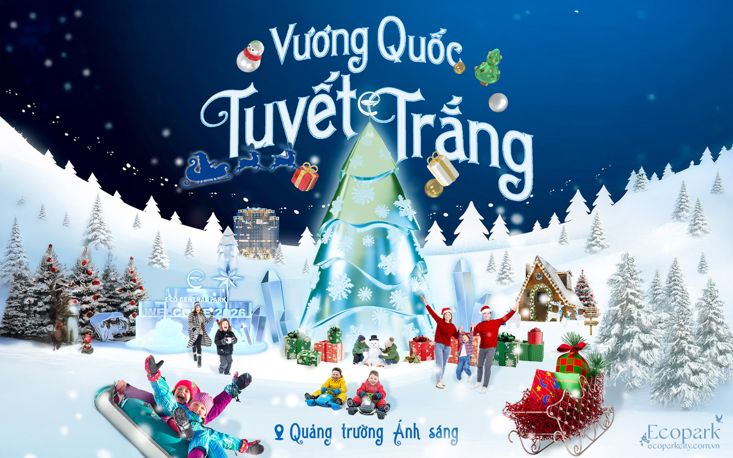 Từ 07/12/2025 tới 15/01/2026 tại Quảng trường ánh sáng hành trình khám phá Vương Quốc Tuyết Trắng Eco Central Park sẽ chính thức bắt đầu. Bước vào đại cảnh lung linh nơi quảng trường ánh sáng hình ảnh Cây thông khổng lồ, cùng hàng nghìn ánh đèn tỏa sáng như bầu trời đầy sao sẽ đấn lối du khách lạc vào thế giới thần tiên miền Bắc Âu. Tại đây du khách sẽ có cơ hội trải nghiệm vô vàn hoạt động vui chơi và khám phá đầy kỳ thú: Bay bổng cùng Cáp treo view tuyết độc đáo giữa không trung, thả mình vào tiếng cười rộn ràng trên Đường băng trượt tuyết, khám phá không gian ẩm thực tại ngôi nhà Noen…