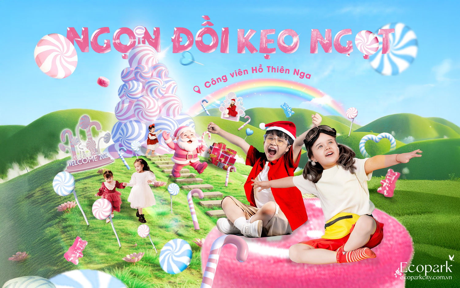 Mùa Giáng sinh năm nay, Công viên Hồ Thiên Nga Ecopark khoác lên mình diện mạo mới Santa’s Sweet Town một “thị trấn kẹo ngọt” lung linh, đầy màu sắc và tràn ngập phép màu dành riêng cho các thiên thần nhỏ. Bước chân vào đây, bé và gia đình như lạc vào miền cổ tích nơi mọi góc nhỏ đều mang hương vị ngọt ngào của mùa lễ hội.