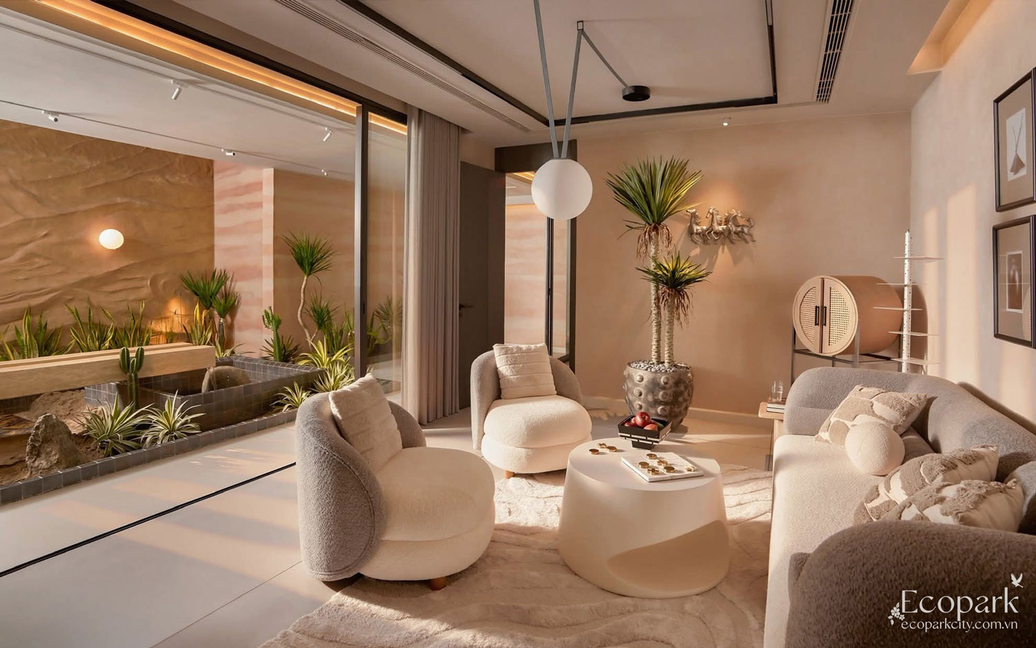 Dưới bàn tay sáng tạo và tâm huyết của nhà sáng lập Ecopark, từng chi tiết trong không gian biệt thự được kiến tạo tỉ mỉ: