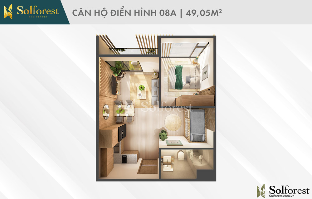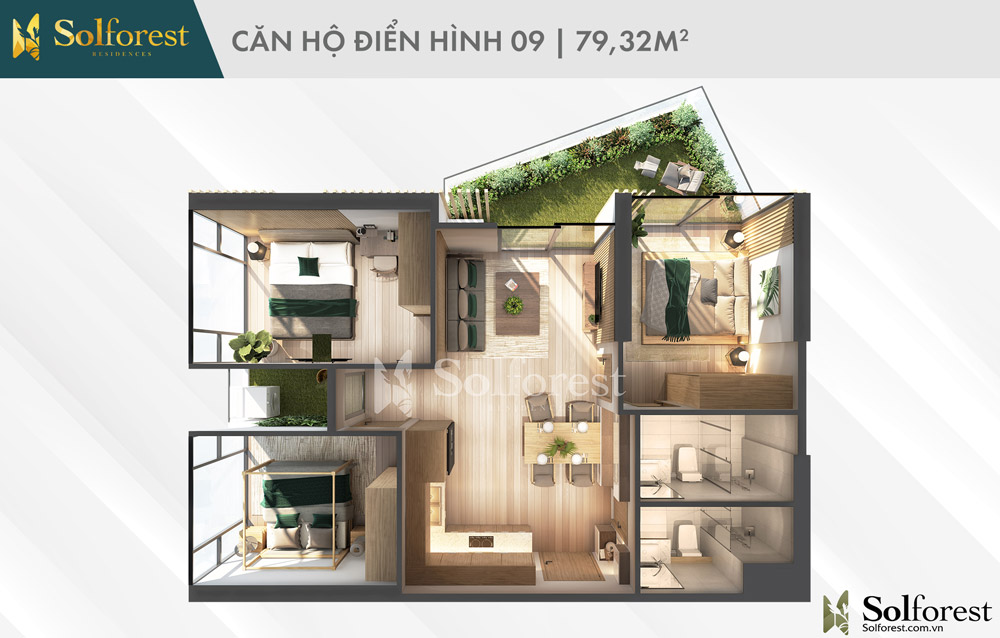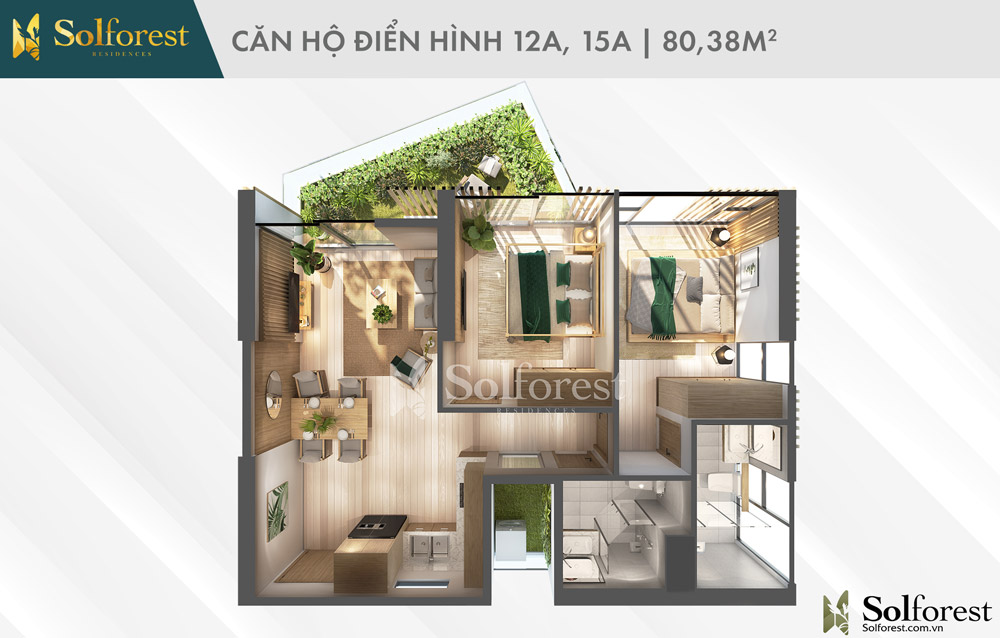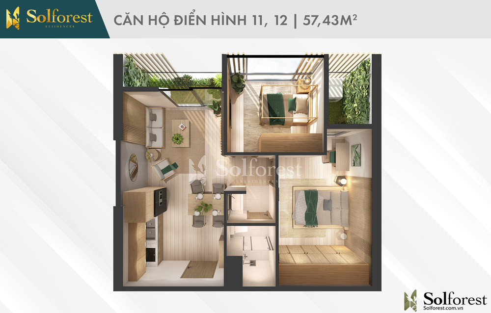 Điểm nổi bật nhất đối với căn hộ tại Solforest chính là thiết kế “Vườn thẳng đứng” một phong cách thiết kế xanh biểu tượng, phong cách thiết kế đã nhận được rất nhiều đánh giá tích cực cũng như các giải thưởng thiết kế nổi tiếng thế giới.